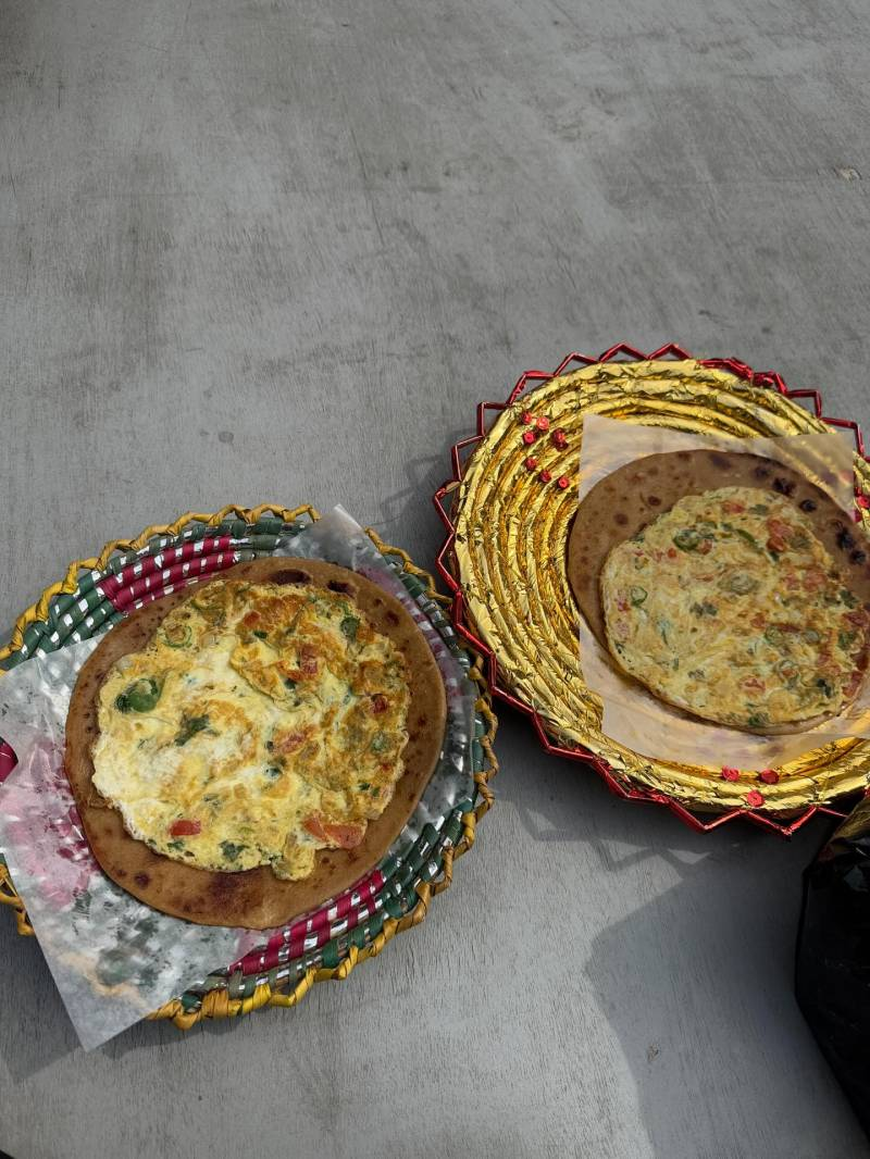 Other images showcased the relaxed vibe of the day, including a husky dog being gently petted and snapshots of breakfast featuring parathas with egg omelettes. Additional slides highlighted the Karachi Farmers Market signage, her outfit from multiple angles, and casual coffee moments, providing followers a detailed visual diary of her day.