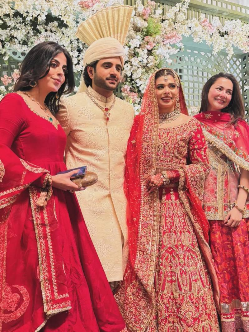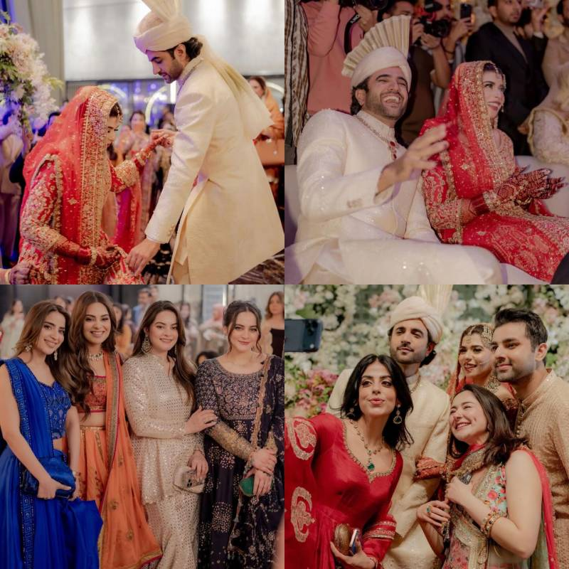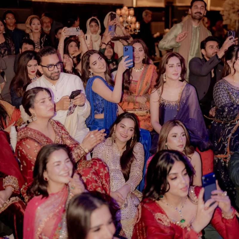 The star-studded gathering featured prominent names from the entertainment industry, including Hania Aamir, Zoya Nasir, Aiman Khan, Minal Khan, Mansha Pasha, Amar Khan, Nawal Saeed, Momina Iqbal, Zhalay Sarhadi, Sheharyar Munawar, Yashma Gill, Yasir Nawaz, Nida Yasir, Yasir Hussain, and Nabeel. Their presence added glamour and excitement, turning the Barat into a high-profile showbiz affair.