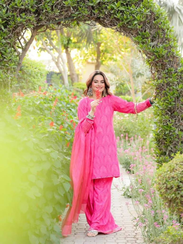 Pakistani actress Minal Khan recently wowed fans with a vibrant Instagram photoshoot in Glasgow, showcasing a striking blend of traditional elegance and modern style. Sharing multiple images and videos, Minal captioned one post, “Color of the season! Loved wrapping in traditional gharara by @farsaabofficial,” while another clip read, “A little pink for grey days.”