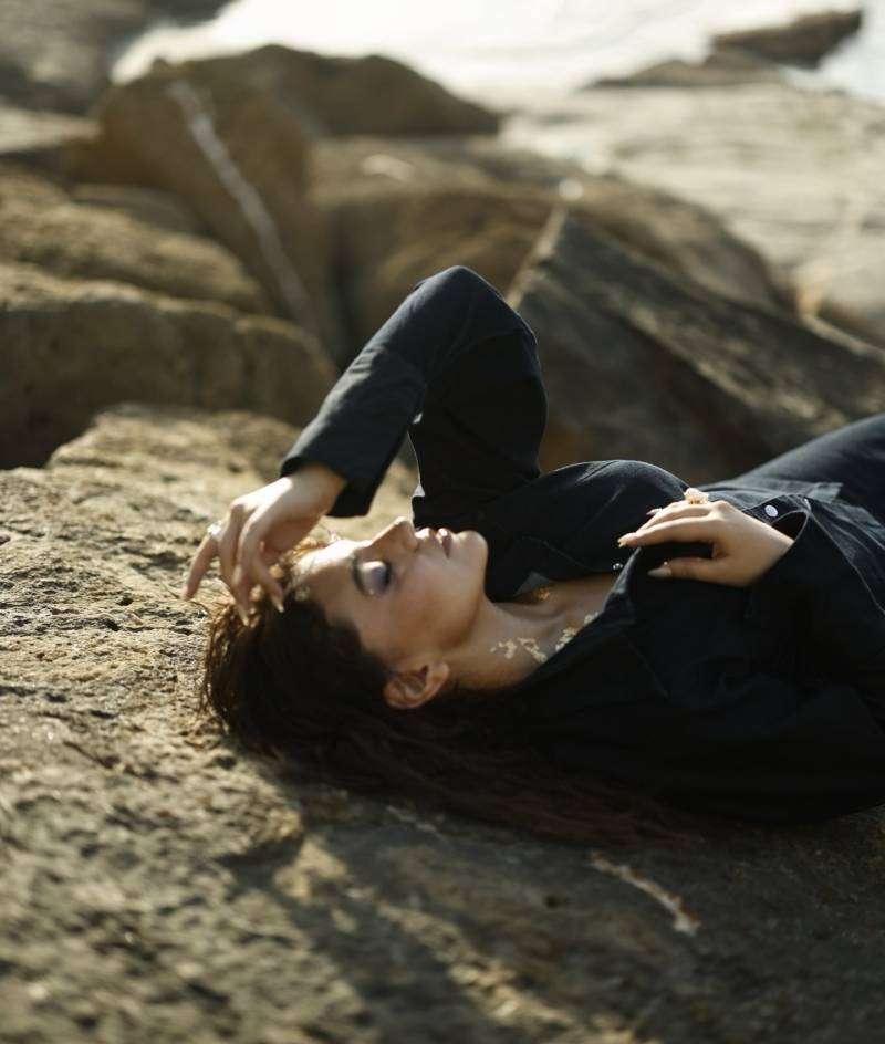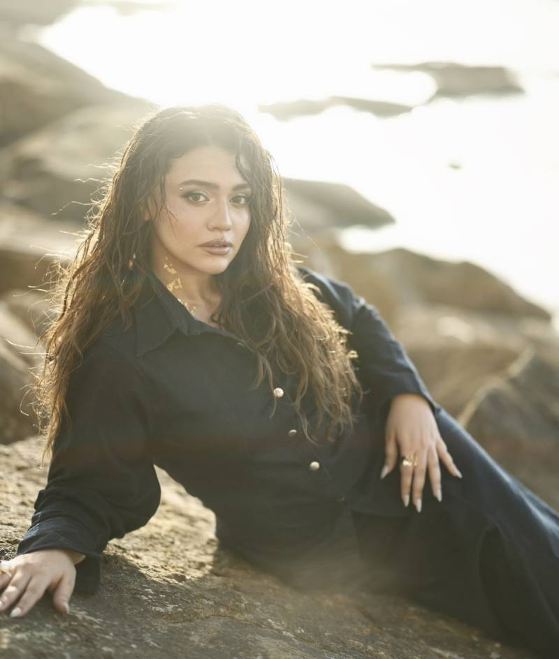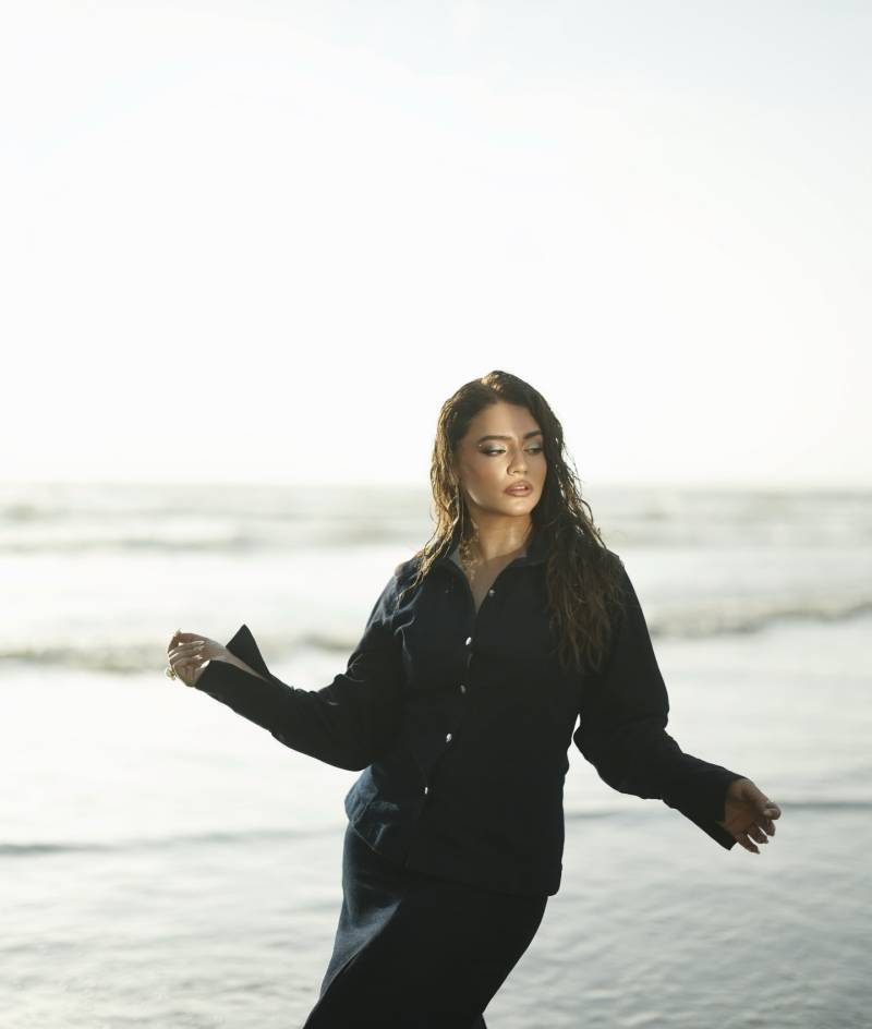 Alongside the message, Zara Noor Abbas shared images from a cinematic seaside photoshoot. The visuals feature dramatic coastal backdrops, golden-hour lighting, and moody black-and-white frames. She wore a structured dark co-ord outfit with a button-down shirt and long skirt, blending editorial fashion aesthetics with the natural fluidity of the ocean.